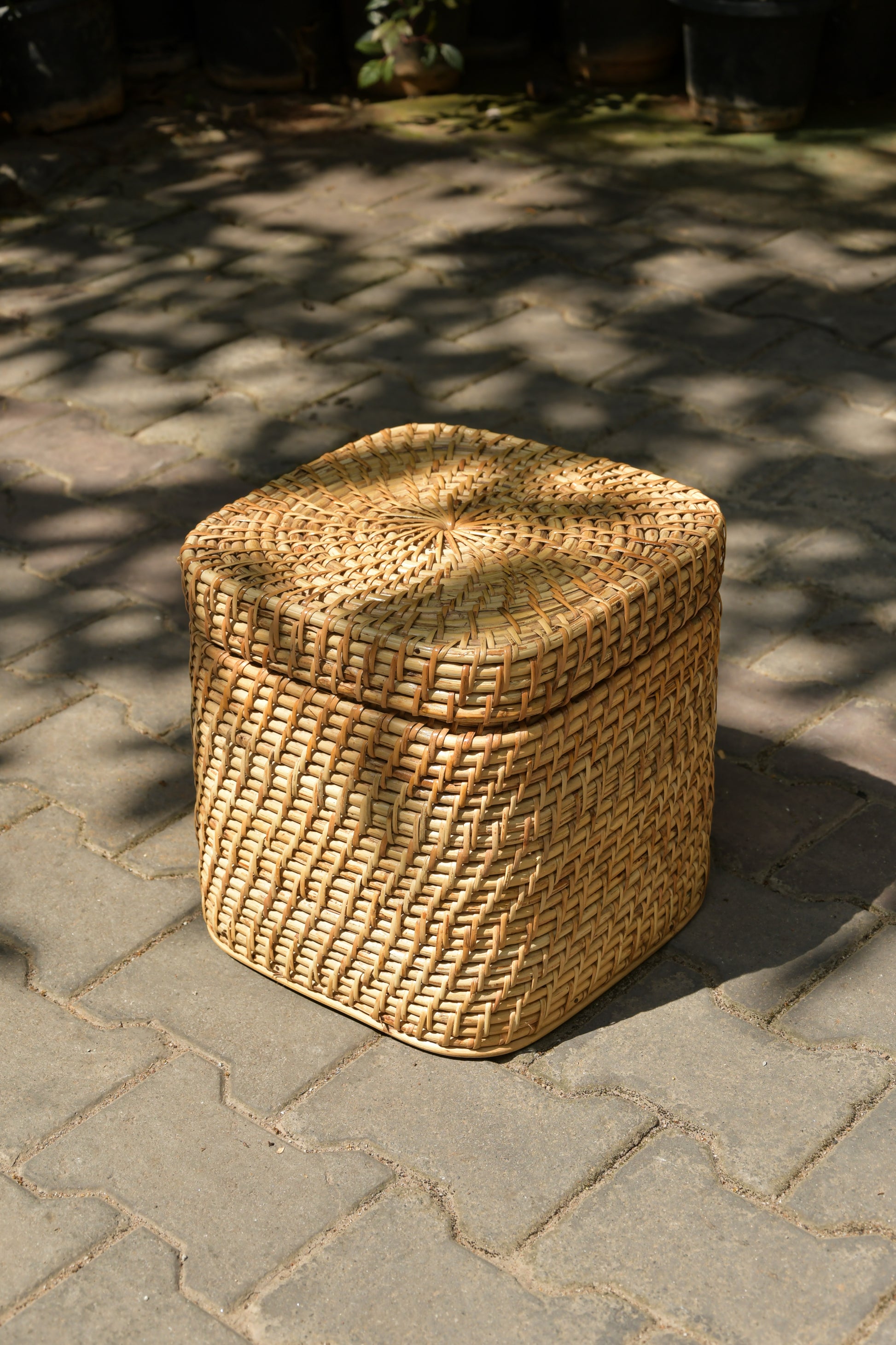 The Nagaon Square Laundry Basket is a multipurpose basket. The basket can be used for laundry, toys, clothes, etc. Made with rattan sticks and rattan leaf by the artisans of Assam.
